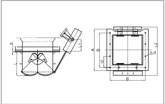 該閥采用電液打推桿帶動(dòng)鄂板實(shí)現(xiàn)閥門(mén)的啟閉,電液推桿由用戶現(xiàn)場(chǎng)安裝在料倉(cāng)的外壁處。